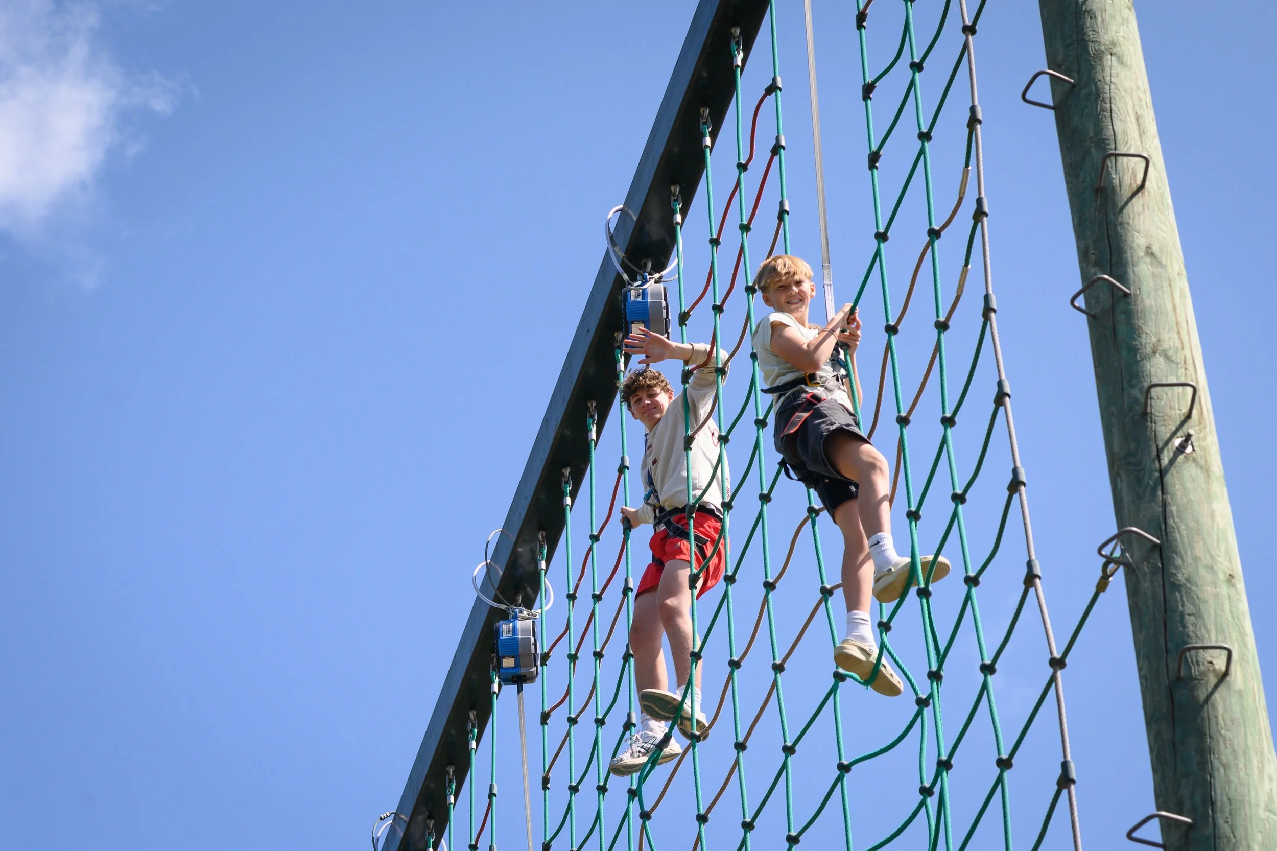 Scale new heights on our towering climbing net—an outdoor challenge for adventurers.